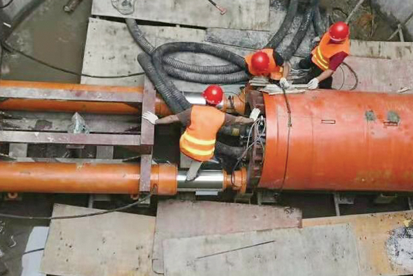河南鄭州頂管千斤頂施工工程現(xiàn)場